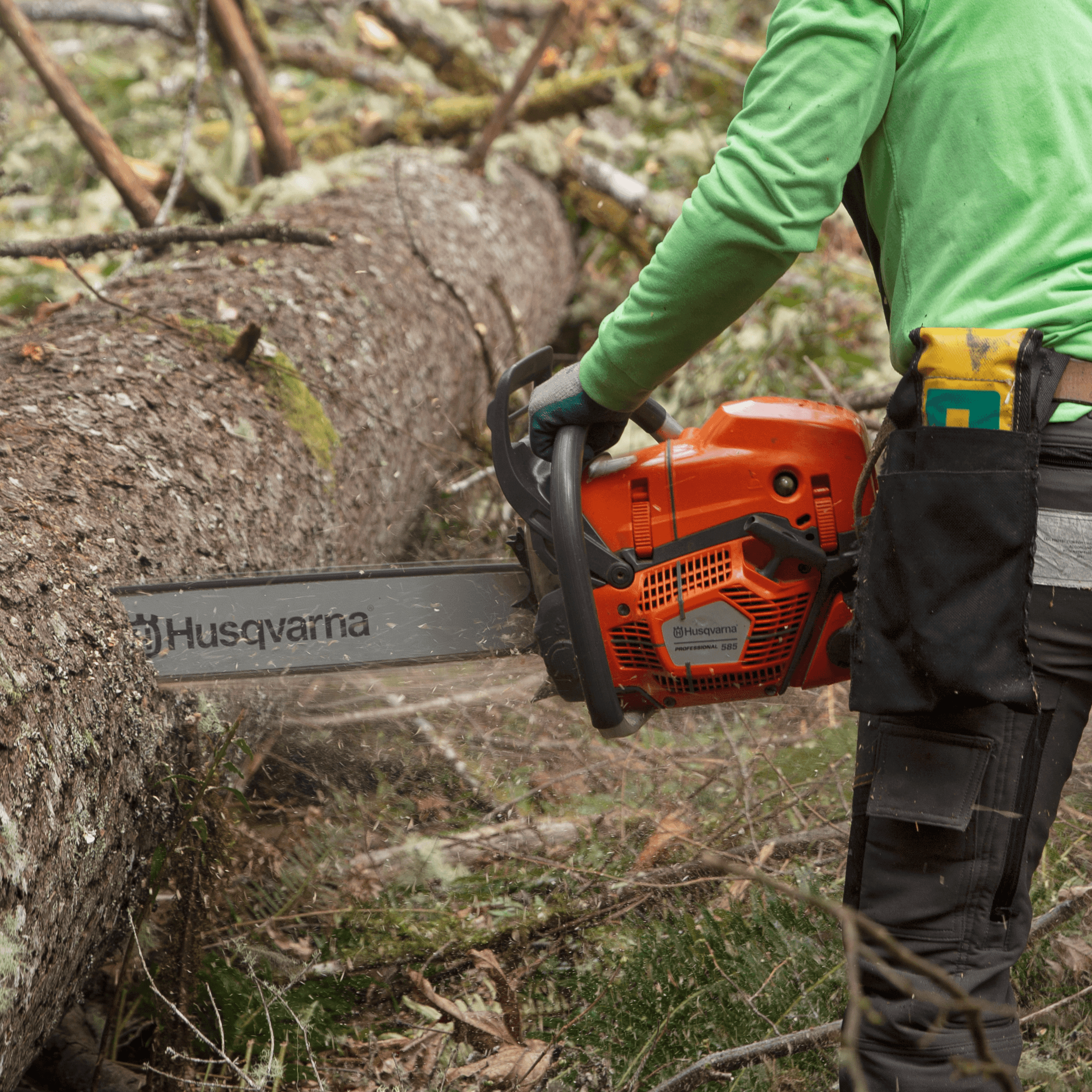 Husqvarna 585 has been developed for forestry and tree care workers looking for a robust and durable chainsaw that’s easy to manoeuver and maintain even in tough conditions. This chainsaw combines proven technology with modern design and performance. The powerful X-Torq engine combined with the X-Cut C85 chain delivers excellent cutting capacity. Equipped with X-Tough™ bar. Recommended bar lengths from 20” to 36”.